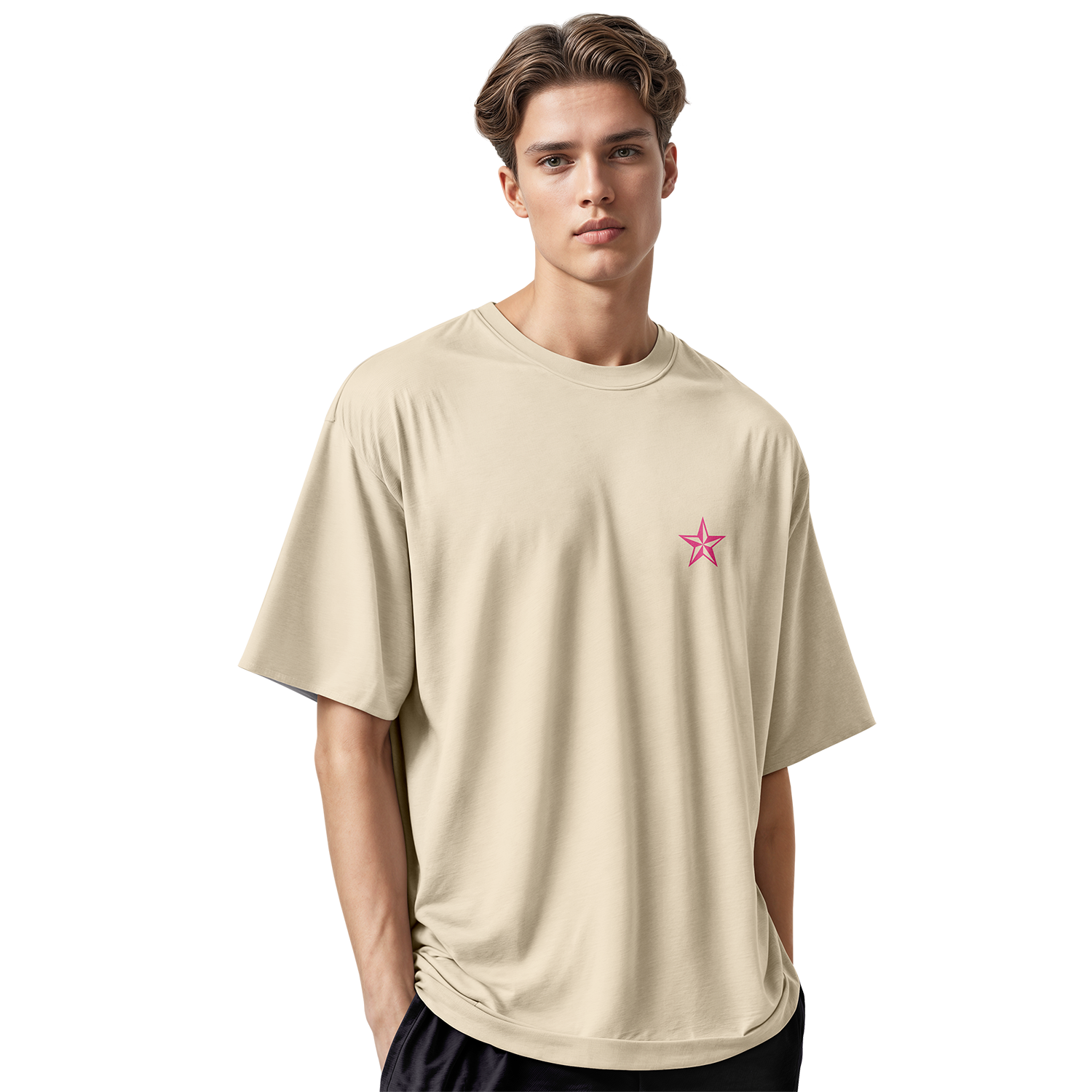 • T-shirts coton beige – coupe oversize